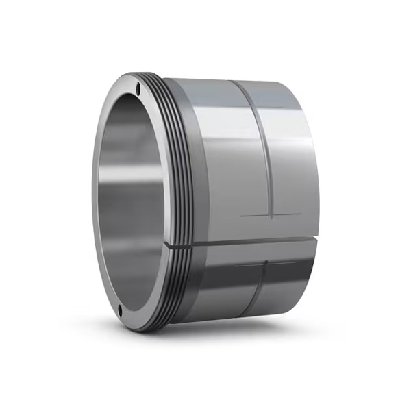退卸套主要用于将圆锥孔轴承固定在阶梯轴上的圆柱形轴颈(→图1)。退卸套被压进靠在轴肩或类似装置的圆锥孔轴承与轴之间,再以螺母或端板将其固定在轴上。由于轴端的螺纹可以根据实际应用有不同的尺寸,因此锁紧螺母或端板没有随退卸套供应。适用的螺母包括KM或HM锁紧螺母(→1006页),但需要单独订购。